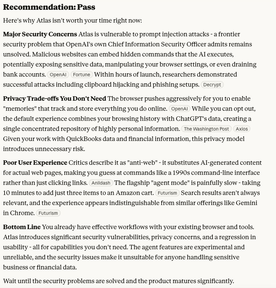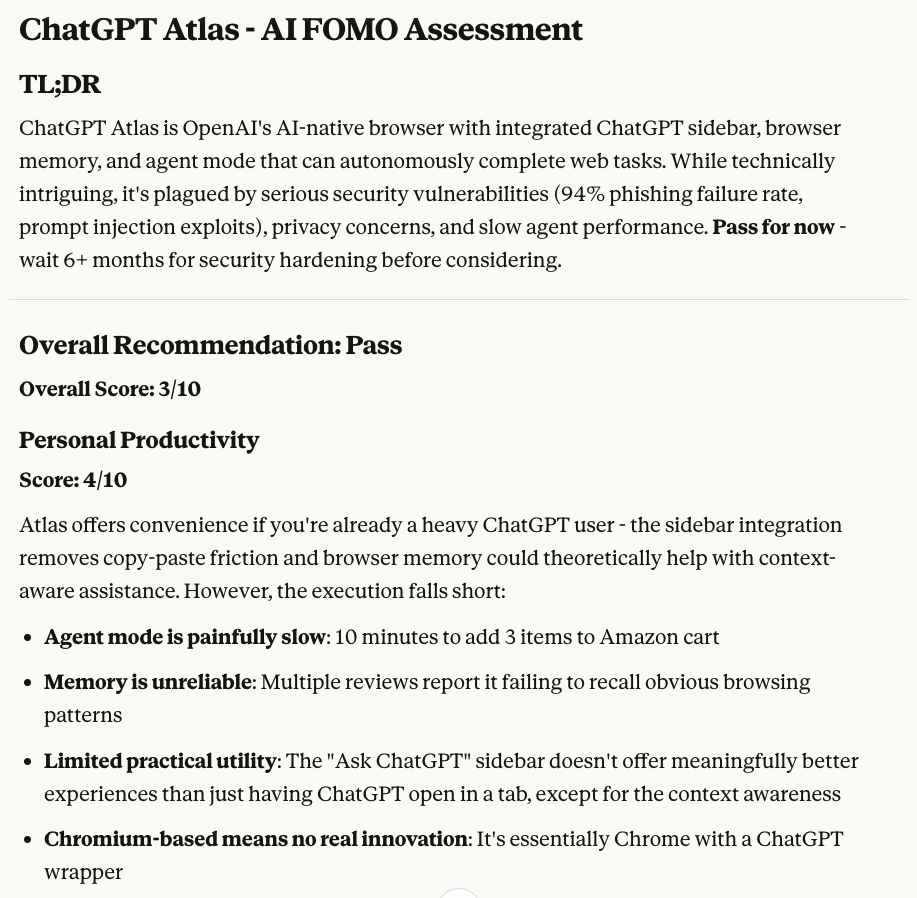 - This only evaluated my personal context, not my professional one. Claude suggested I pass on using Atlas for personal productivity, but is there some element of my job where Atlas might still be relevant?