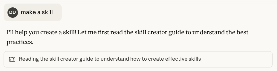 - You can build a skill by asking Claude to “make a skill” and then answering Claude’s questions. (Make sure you’re on a Pro or Team account, and turn on the skill-builder skill.)